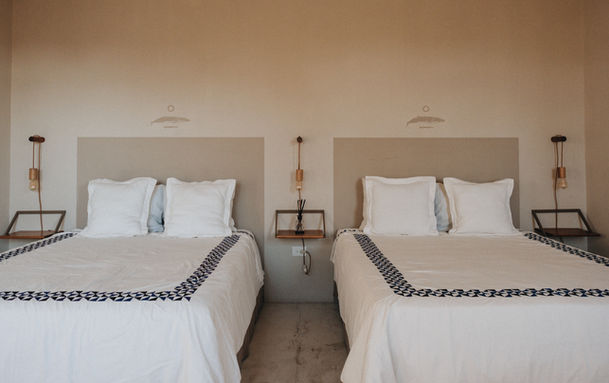 Tenemos 6 habitaciones con un estilo desértico minimalista. Todas integradas a las áreas comunes del Mantarraya. Disfruta de un chapuzón en la alberca, una siesta en una hamaca, toma el sol en nuestro asoleadero, disfruta de una velada a la luz del fire pit, y contempla la puesta del sol desde el roof top. Todas nuestras habitaciones cuentan con baño privado, WiFi gratuito, A/C, amenities de cortesía, toallas de baño y de playa y escritorio. Como huésped tendrás acceso a renta de bicicletas para recorrer el malecón y equipo de playa como sillas, hielera y sombrillas para completar tus aventuras.